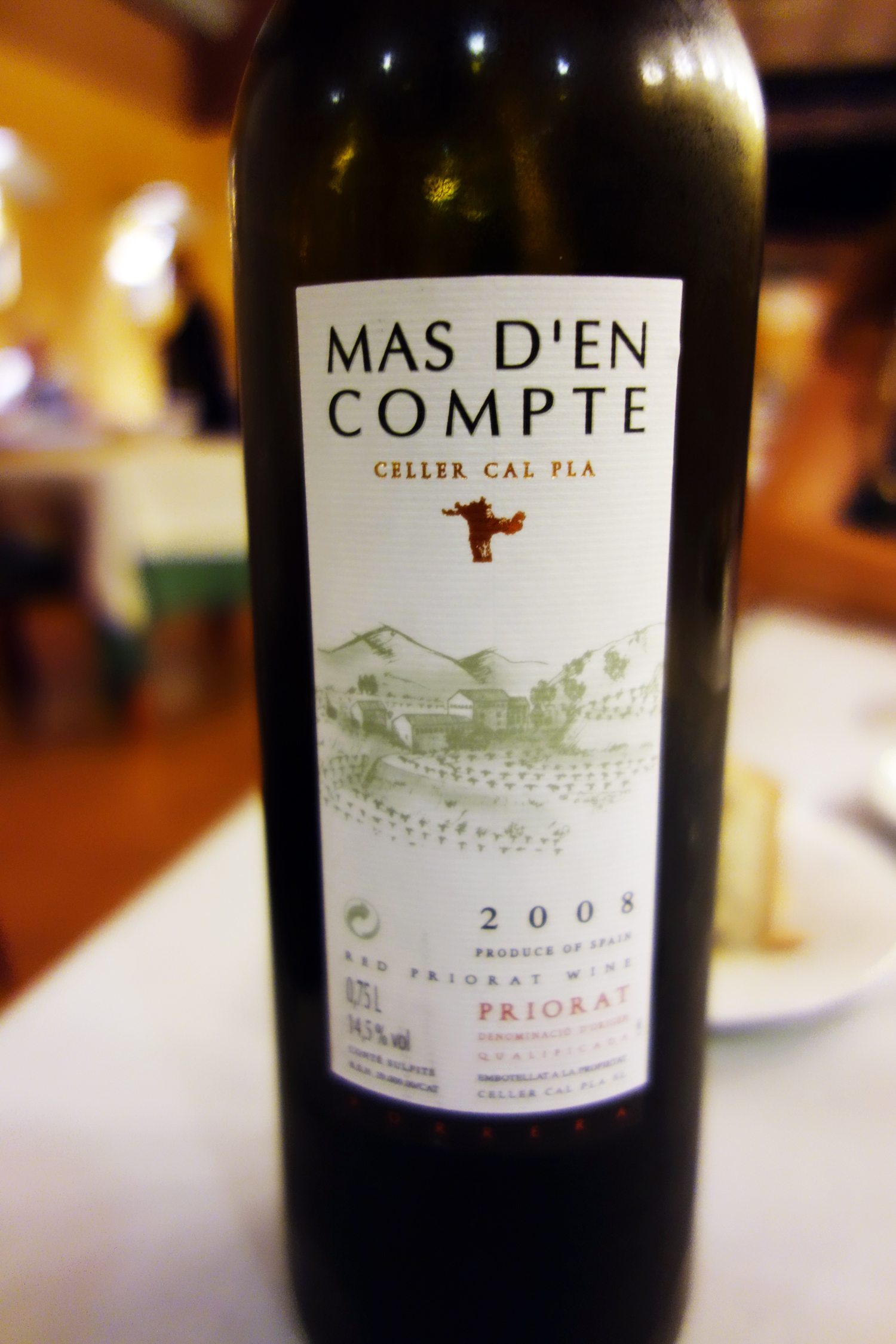 The dining room is well lit, the tables elegantly set, the service graceful and fluid. It’s formal for Falcet, but only just Priorat-chic still. Diners look good and eat quietly, but there’s a sense of homeyness brought about by the presence and accessibility of the Chef who doubles as the one true host of the restaurant. Needless to say, he’s also the sommelier, guiding his guests through the list and helping to choose something they may have never tried before. For us he selected a 2008 Mas d’en Compte from Celler Cal Pla [blend of Garnacha, Carignan and Cab Sauv] and a 100% Garnacha to teach us how this most representative varietal of the Priorat behaves alone vs. in a blend. I enjoyed both very much, though Mas d’en Compte seemed a bit smoother on my palate.