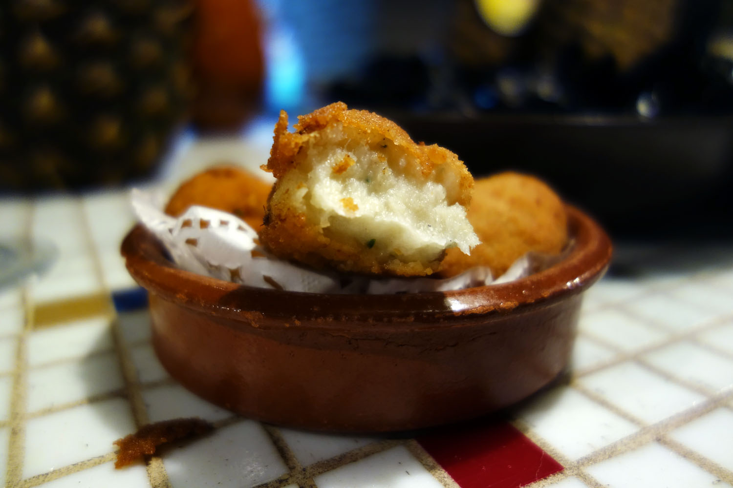 At this point I really only order croquetas de bacalao when I know they’re going to be good. Prepackaged, frozen and deep-fried to order is always a bummer and painfully obvious in case of these and patatas bravas, which I’ve also had a few miserable versions of lately. The last great ones I’ve had were in Gandarias bar in San Sebastian. The quality of those made me believe there is a way not to screw up croquetas.