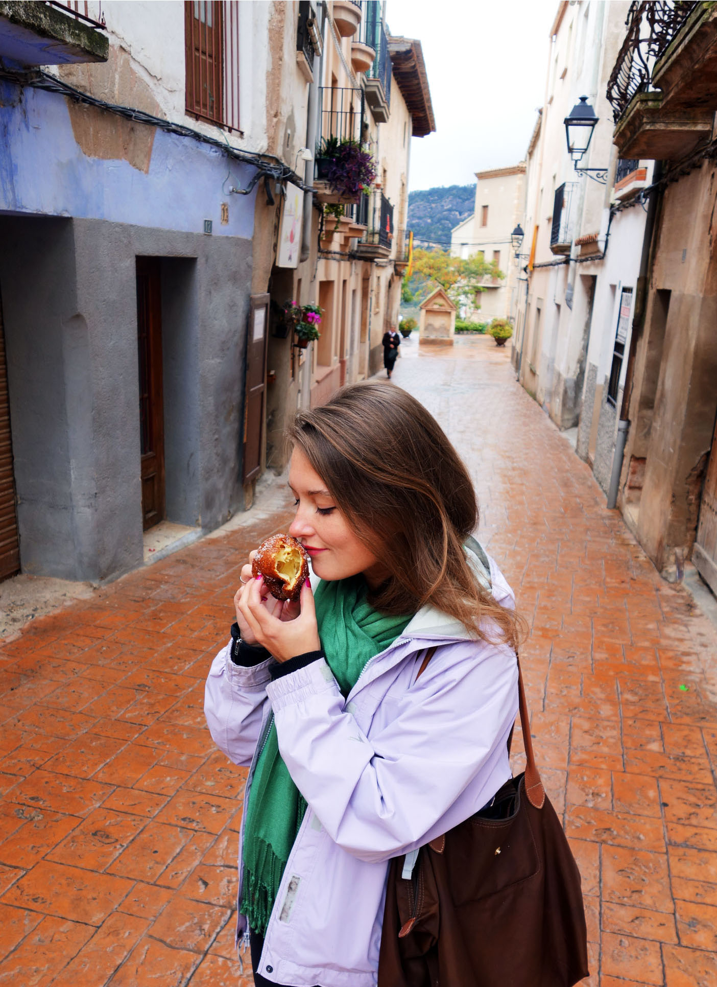 So we drove out there, my two colleague-roommates (read: sisters) and I. My body swung left and right as the car hugged tight the sharp curves of the winding mountain road, but my thoughts did not waver in the least from the bunyols. The bunyols de vent. I realized halfway there that I did not actually remember them too well at all, just that they had surprised me. They had left an impression, like a shapeless dent in my memory. As we rolled up into the medieval town that I had been to just once prior, my eyes frantically scanned every street corner for something to guide me quicker to the target of our journey. The bunyols de vent. The last time I tried one was in August and I hadn’t had the chance to return for them since. But I had thought of them often. There had been something about them that made them unforgettable.