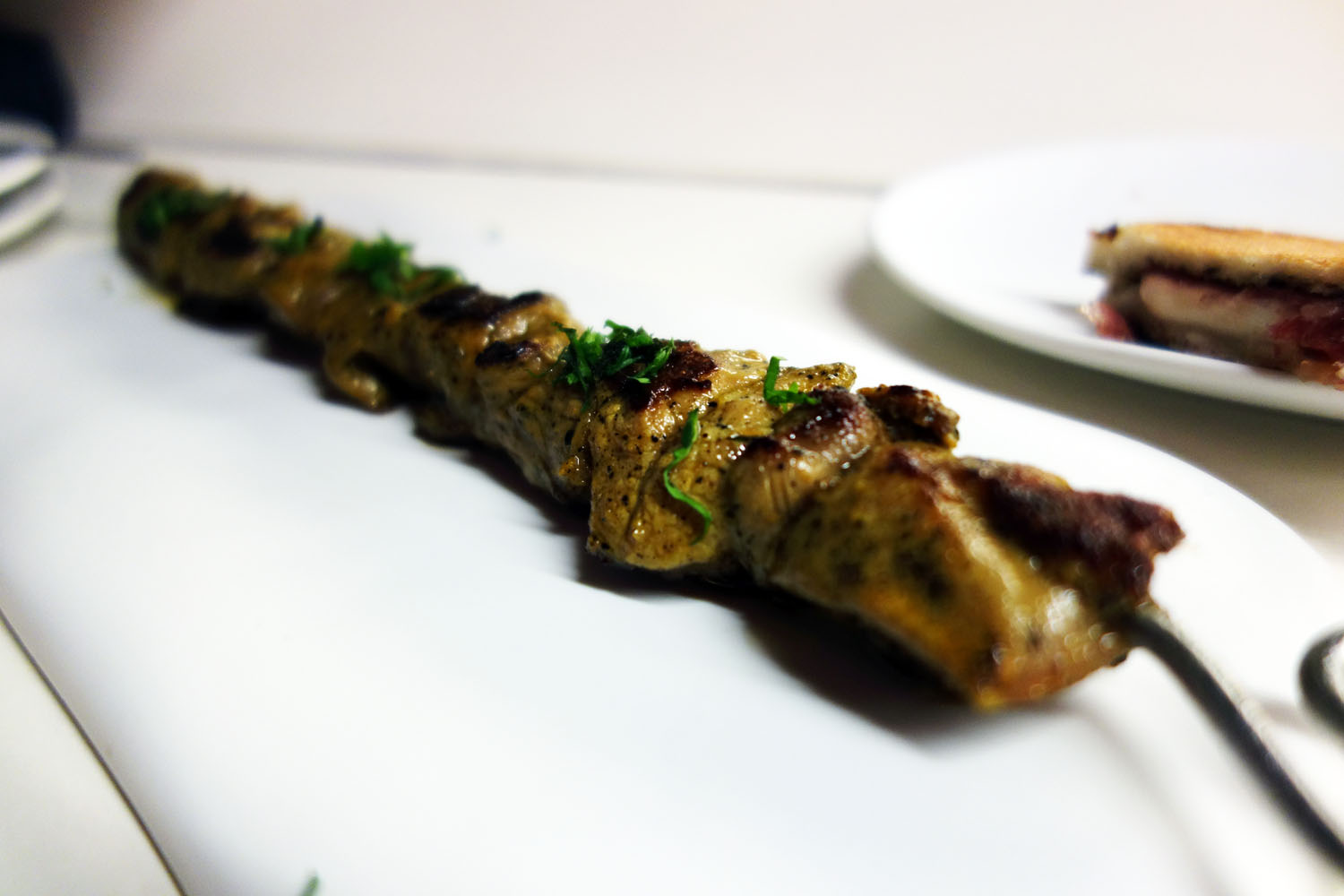 Pinxo de Cordero “Alhucemas” was the only dish of the night that didn’t stand out to me at all. Bite-sized chunks of lamb were pierced with a skewer and grilled to a nice texture with subtle hints of a Moroccan spice rub and some fresh green herbs sprinkled on. A good lamb dish but not unlike brochetted meat I’ve had before. Some sort of chutney or cream sauce or maybe a thin bread to wrap the meat into might have spruced this one up. As it stood, this dish seemed a bit incomplete.