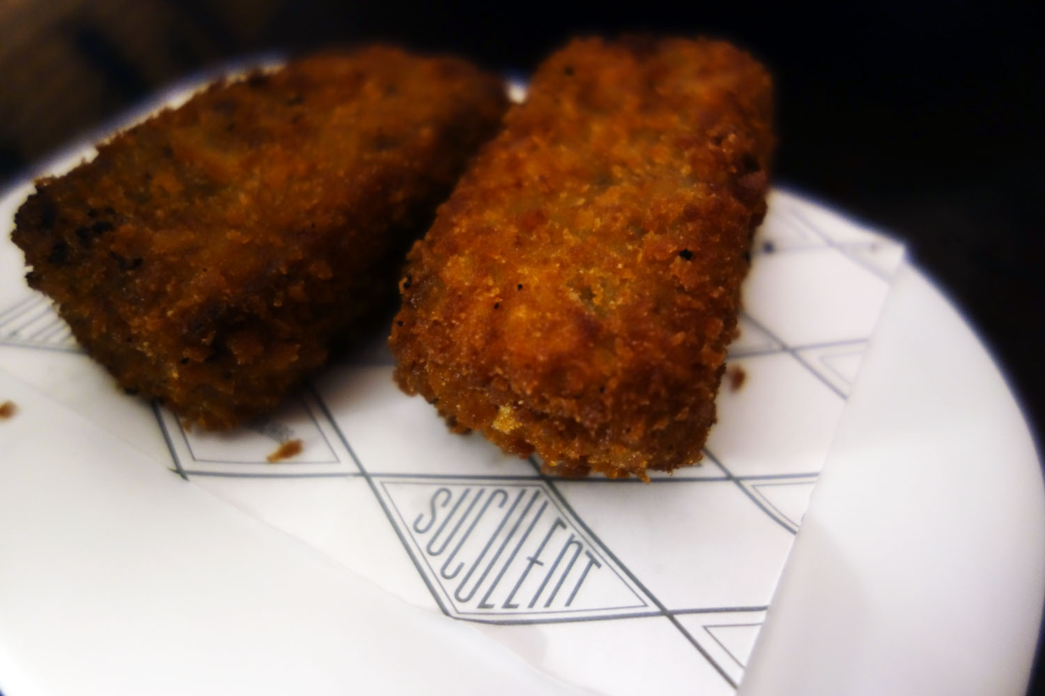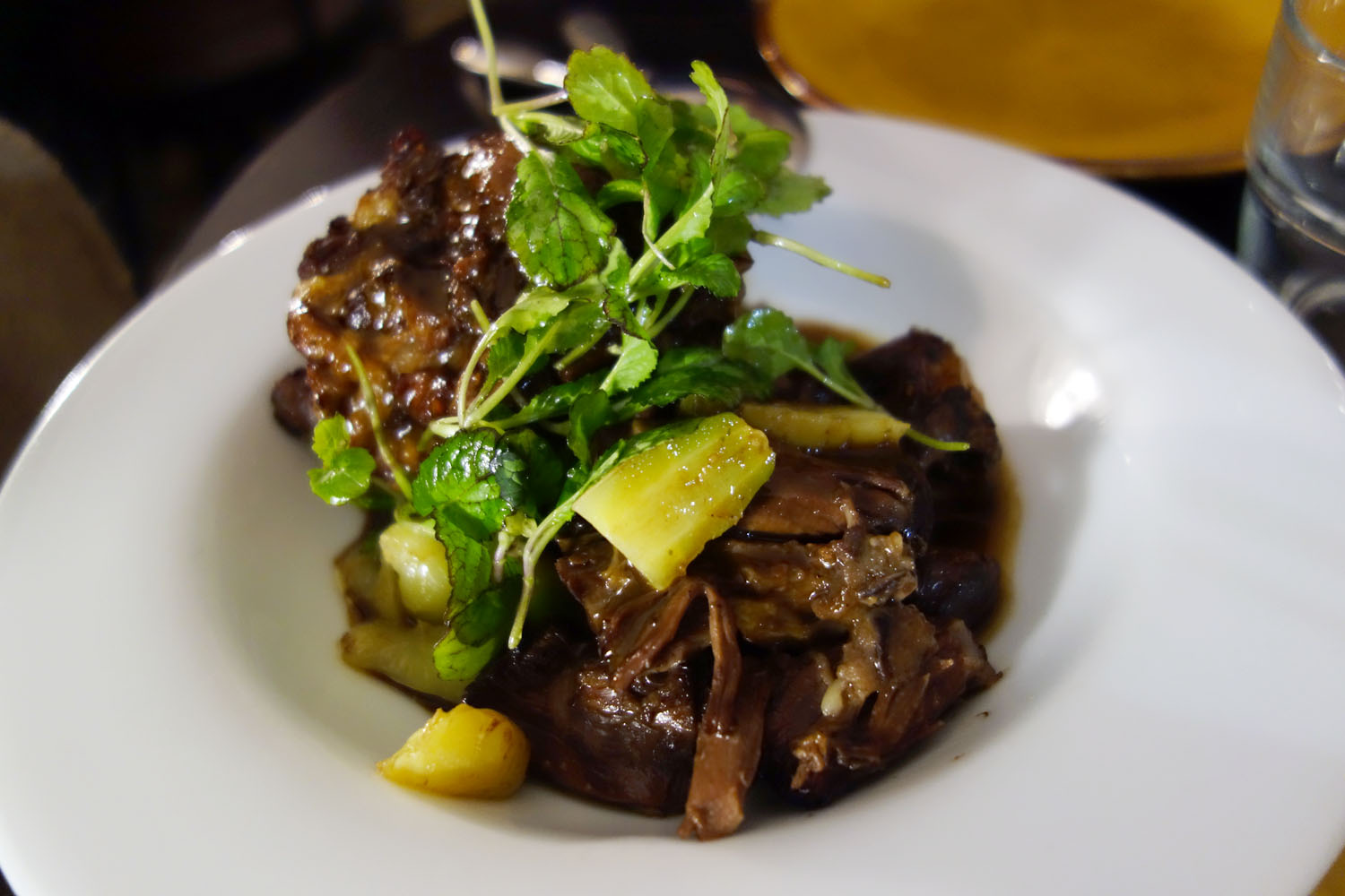 It’s not every day that you wake up to the low rumble of a dishwasher as it soaps, soaks and steams the tailbone of a Galician blond. I had snuck the bone off the plate and wrapped it in a white linen napkin before hiding it in my purse, a keepsake of a dish I enjoyed more than a bit. There wasn’t actually much work for the machine to do at all as I had torn and sucked off all the meat, sipping marrow fervently out of every groove and pore. Suculent’s braised oxtail with chocolate sauce and baby carrots is the undisputed protagonist of the restaurant’s diverse menu, a dish that must not go unordered.