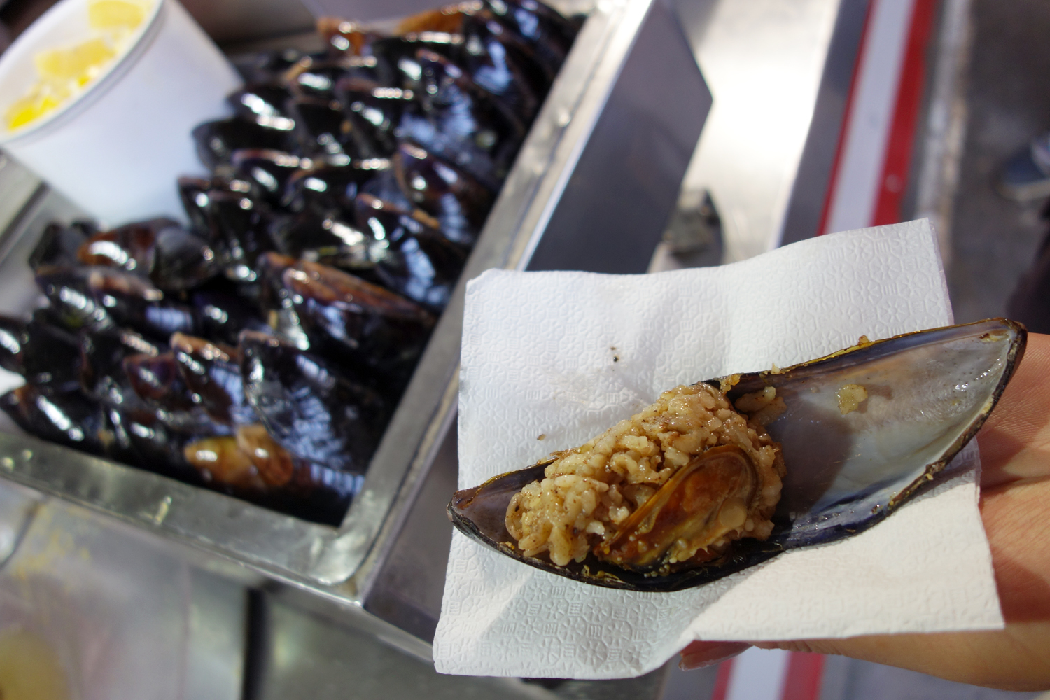 They’re mussels. They’re sold for pennies on the street from unlicensed vendors constantly on the lookout for police to bust their spot. If Turkey joins the EU they will doubtless be banned because they’re room temperature shellfish handled without gloves. You have no idea where or how they were caught and neither does the guy selling them. You suspect they contain mercury and the concentrated filth of oil rigs that traverse the Bosphorus. But you simply don’t care. Everyone is doing it and to be cool, you do it too.