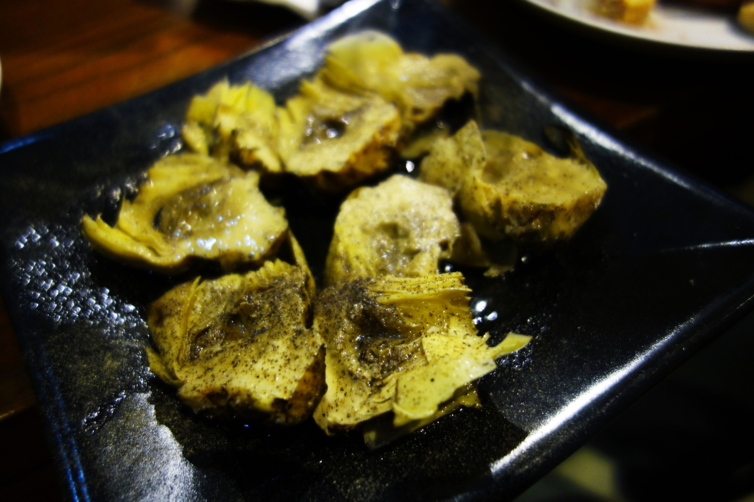 Another great starter are the artichoke hearts sautéed with plenty of freshly cracked black pepper and some olive oil drizzled over. A good dish made great by the simplicity of its preparation. The hearts are tight and plump, with a ton of flavor. The natural sweetness is curbed by the white-hot heat of the pepper. Not too much oil to make them excessively greasy.
