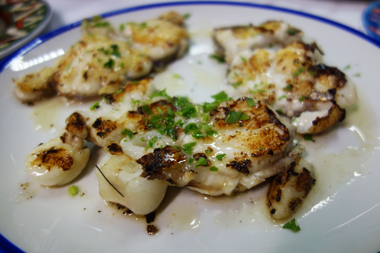The restaurant was a bit too close to the parking lot for us to really consider it at first, but after searching a few of Blanes’s top dining recommendations we came across the name over and over again. Can Flores. Fresh, no-fuss seafood. Been there since 1958. We swerved right around and headed back towards it, leaving pasta-pizza-pane behind us. Can Flores is a laid-back and very familiar, white light lit watering-hole. It’s likely the best place along the promenade to get a fresh filet of fish baked or grilled and served simply with a wedge of lemon and a glass of chilled Verdejo.