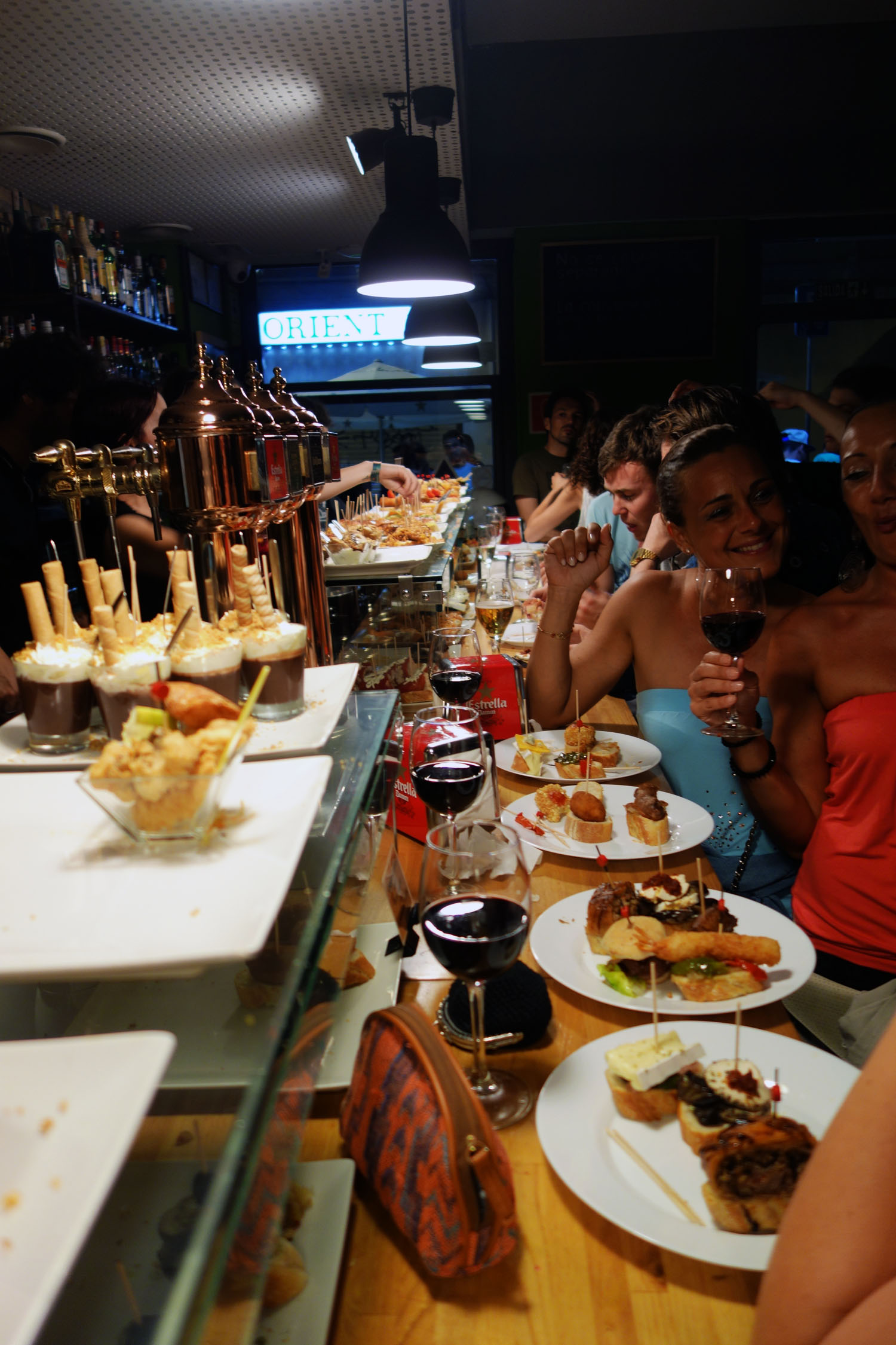 We were quite underwhelmed by the selection at a place called De Picos Pardos further down the Blai. The tapas looked pretty mundane and it took us a while to order, in this case not because of the overwhelming choice between delicious bites, but because it was difficult to choose one we’d actually pay for. I ended up picking a montadito with a single, super salty anchovy lain over a bed of slippery smooth escalivada (made of roasted eggplants, red peppers and onions). It wasn’t too bad after all. The stingy brine of the fish woke up the humble, comforting flavors of the roasted veggies, the latter of which melted like smooth butter over the slice of baguette. I guess I had a lucky pick. My dinner companion doesn’t even remember what she got there, nor did we think it was worth photographing to remember.