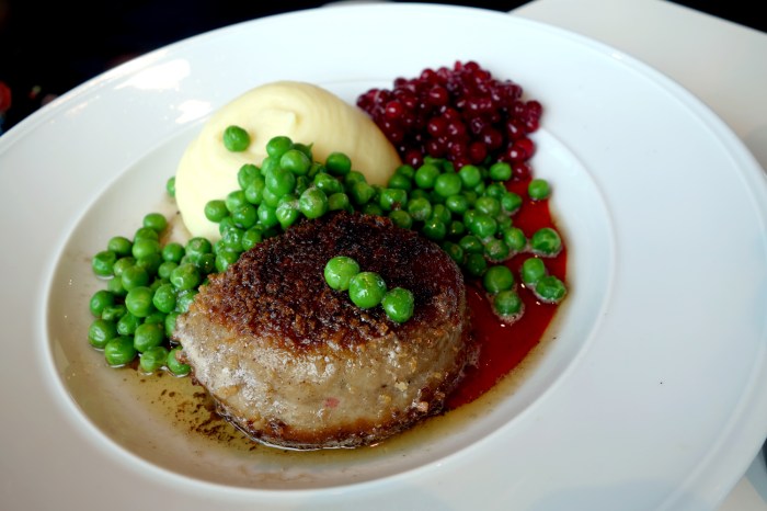 I didn’t think it could get much better than the classic Swedish meatballs until I tried my aunt’s wallenbergare, one big meatball (or patty?) made with ground veal, egg yolk and cream, coated with breadcrumbs and fried. This dish is decadence extraordinaire. It is heavenly soft and sumptuous, with each bite revealing an abundance of fresh cream mixed in with top quality meat. Expertly made, this wallenbergare also featured a heavenly layer of breadcrumbs tightened up into a firm and crunchy crust that contrasted perfectly with the unbelievably juicy and soft interior. As if this dish wasn’t luxurious enough already, it came served with skirat smör (clarified butter) that was, nevertheless, balanced by the bright red juice flooding out of the lingonberries. Also in the bowl, a generous pile of bright green peas and the same smooth potato puree. A top notch dish indeed.