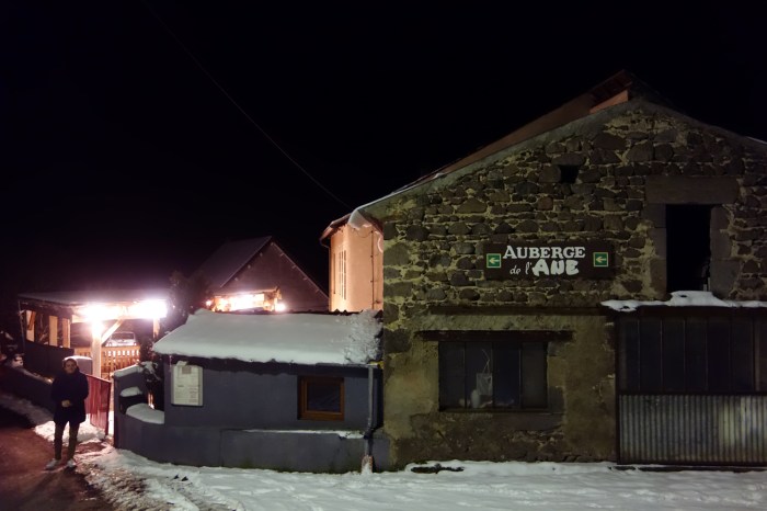 After some time melting my sins away in the dry sauna of our Saint Nectaire hotel, I shocked my senses awake with an ice-cold shower before suiting up in sweater, coat and Uggs and heading out again for dinner. We had made a reservation at L’Auberge de l’Âne, a charming, rustic tavern-type restaurant at an altitude of 876 m in the heart of the Auvergne Volcano Regional Park. It’s the type of place you call ahead for reservations, specifying your choice between their three hot entrees well in advance. While they also do a mean Fondue Saint Nectaire, their signature is the truffade. This is another speciality of the Auverne region, which – like its gooey cousin, the aligot – involves potatoes and cheese.