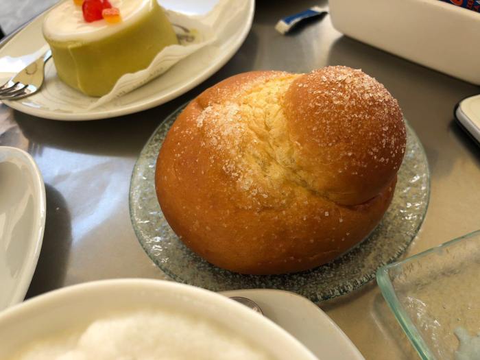 We ordered a bowl of this and a bowl of the tangerine granita, both superbly refreshing on an overwhelmingly hot day in May. The almond tasted of nothing other than almond, much less sweet than I expected. Instead this granita had the clean, milky flavors of un-salted, un-toasted almond flesh, including that simple, green vegetal essence. The texture of the thing also made it a pleasure to eat – the wet, slushy and cool lumps of finely-grained, flavored snow, almost as smooth as sorbet on the palate but without that sticky, syrupy quality unavoidable in mass-produced sorbet. It stayed snow on the tongue but for a moment before melting into a light cream, not too dense in flavor or texture. The tangerine granita was likewise delicious, just tart enough to be refreshing but not too acidic to prick the tongue too violently. Granita is for me quite an unlikely pairing with brioche, so emblematic of French breakfast. But it makes sense as a breakfast in southern Sicily, where sizzling hot summer mornings call for a light breakfast. Frozen, melty granita with a puffed up, airy brioche on the side, easy to tear into its egg-y mouthsful, the grainy lattice of crystalline sugar offering a pleasant crunch. And just like that, my first Sicilian summer breakfast experience with granita di mandorle & brioscia.