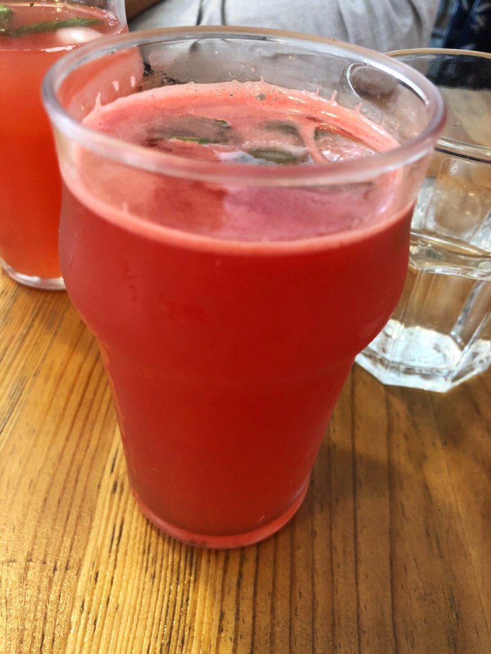 It started with a freshly-pressed watermelon juice, a slightly frothy and naturally sweet beverage, seasoned with a mint leaf lain over the top. Simple and thirst-quenching after a cup of coffee.