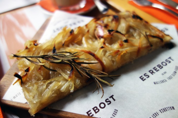 My first bite of Mallorca… well, it was Taco Bell. But that’s just because my dear friends know me well enough to know that if I’m ever in a country where Taco Bell is an option, especially as a late night delivery, it will trump all else. But my second bite of Mallorca, that one had to have sobrassada, the creamy, paprika-flavored sausage I had ordered so often in Barcelona, in the form of a bikini sandwich, to ease Sunday morning hangovers in Plaza del Sol. And now, at it’s source, I simple had to get something with sobrassada, anything really. Luckily, Team Bride had planned ahead and they brought me to a little spot called Es Rebost, specializing in classic Mallorcan “Fast Slow-Food” dishes made with artisanal ingredients they source from carefully chosen producers. They had a nice list of tapas, some options perfect for brunch and a great coffee/juice list.