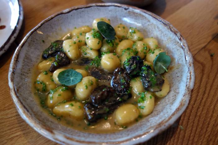 I usually don’t order gnocchi because I’m too picky about them. If they are even just a tiny bit tough or chewy in the center, they become starchy dumplings, too glutinous to swallow easily. But I held my tongue when my dinner companions ordered it, willing to give the Cent33 version a chance. These were everything gnocchi should be. They were pillow-soft, melting in the mouth and leaving behind a mild potato flavor. And they were fluffy all the way through, no tough core. They were served with juicy morel mushrooms in a creamy, indulgent mushroom sauce and topped with pretty nasturtium leaves which packed a black pepper punch, exactly the heat the dish needed.
