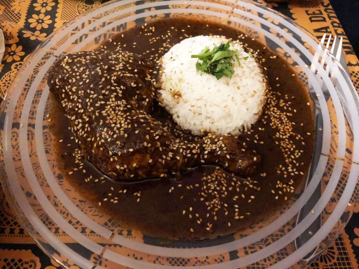 We also ordered the Mole Poblano, a chicken thigh doused in a dark brown mole sauce and served with a scoop of white rice. La Copa Rota’s mole was tremendously disappointing. For having “25 ingredients,” the sauce was flavorless and watery compared to the thick, unctuous symphony I was expecting. The cacao flavor was in there, but in an unpleasantly sweet way, without really blending with the other ingredients. The chicken was cooked okay, although the skin got quite soggy. Perhaps this works in a city where there is no other mole to compare it to, but it left me thoroughly unimpressed. It’s a challenging dish anyway, so I wasn’t expecting too much quality for 10€.