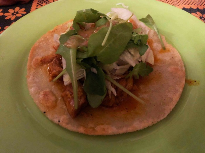 In terms of vibe, this place passes. The tables are covered with colorful fabrics and set before a painted mural of joyful skeletons on the wall facing the bar. Seats are low stools on tables that are close together, creating exactly the kind of intimate dining environment you want from this genre of restaurant. Vibrant salsa music adds a hint of spice. It’s also very compact (read: intimate) and well-located. It seems like that perfect little secret spot to keep in your pocket to whip out whenever you’d like to impress friends. The place is run by a sassy Mexican lady named Claudia Flores, who either likes you or doesn’t, and makes her opinion known. But she also routinely decides to close up shop on a whim, neglecting to tell guests who have reserved for the evening and leaving them stunned in front of a locked storefront, usually in the rain (this is Bordeaux we’re talking about, after all). And I guess she can do that since La Copa Rota is one of like 5 “Latin American” restaurants in the city to offer tacos. But it doesn’t really seem acceptable. My shared birthday dinner there didn’t really go as expected either. The margaritas were laughably small and weak, the tacos all seemed to be vegan despite only around 2 out of 12 of us not eating meat. Basically every measure was taken to cut cost.