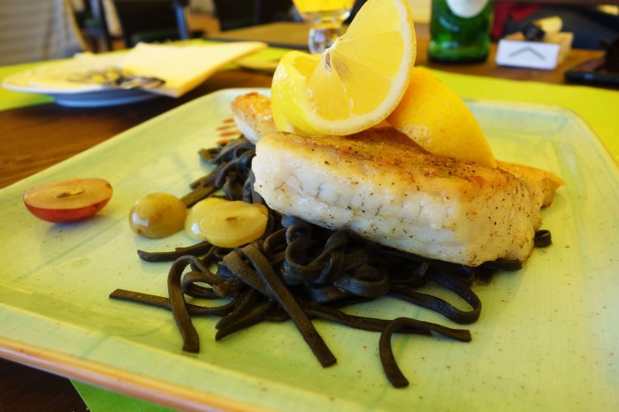 Ben ordered one of their signature dishes, a filet of locally caught Balaton pike-perch cooked on the grill and served with a kind of wide pasta made with grapes or grape juice. I’m a tad picky when it comes to pasta so I wasn’t a big fan of this creation. The fish, however, was wonderfully flaky and juicy, obviously very fresh and seasoned just right.