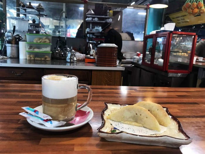 This spot is specializing in Moroccan pastries and mint tea poured from an arm’s length with significantly less fanfare than it deserves. They also happen to make a mean little latté with this perfect wet foam that floats upon layers of coffee until mixed in. It’s a bit too hot to drink when it comes out. As we wait for it to cool, we chat about what we envision cooking in the week ahead.