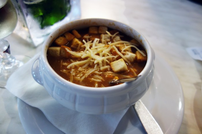 My personal favorite thing here is the Soupe de Poisson à la Rouille. A thick, delightfully grainy and very comforting fish soup that comes served with grated cheese to melt into it, some croutons and a flavorful roux. I like mixing the croutons into the roux before dumping them into them in. The roux adds a splash of garlic and spices (paprika? piment d’Espelette?) to the otherwise already very flavorful soup.
