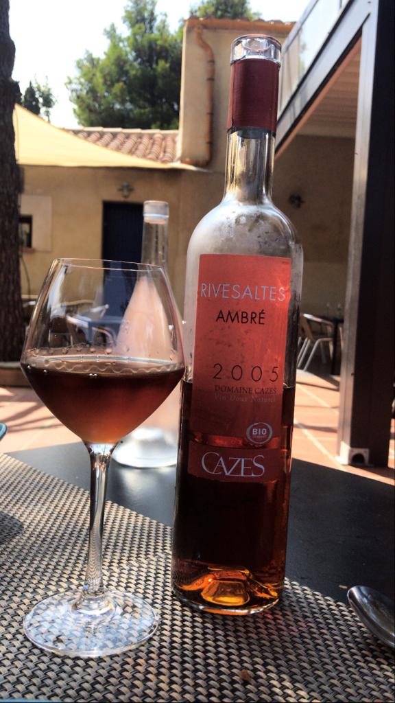 Lunch was capped off with what was probably one of the best crème catalan experiences I’ve ever had (and I’ve had quite a few). The cream itself achieved the perfect consistency, the perfect thickness, a velvety smoothness and a nice gloss. It was flavored with vanilla bean, which added a floral touch, as well as what I suspect was either cinnamon or anise. Its brittle burnt caramel lattice was the perfect shade of golden brown, perfectly paper-thin to pop and shatter under the weight of my spoon, reflecting the summer sunshine in a million different angles like the shards of a freshly smashed mirror. The nutty caramel complemented the sweet cream beautifully, with a nice touch of acidity thrown in from the berries sewn across the top. Reinforcing the nutty caramel flavor of the torched crust was the oak-aged, pleasantly oxidized rancio AOP Riversaltes Ambré 2005 by Domaine Cazes paired with it. Smoky, nutty and honeyed touches mix with wrinkly dried apricots, prunes and figs on the nose of this delicious and dense sweet wine.