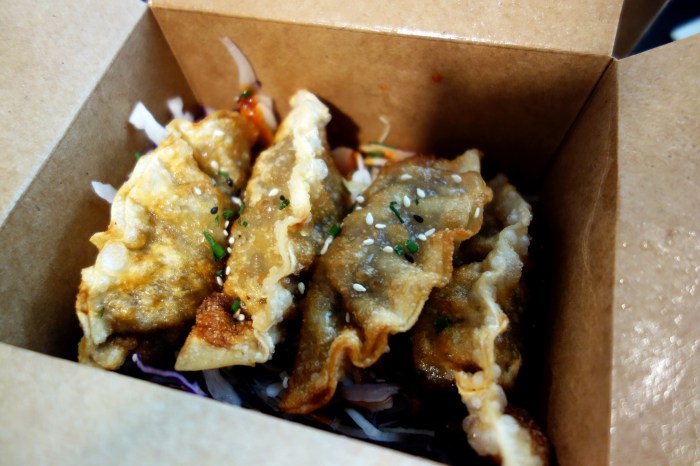 The wonton wrapper of the Bibim Mandoo and the shredded beef of the Bulgogi Bibimbap are recycled to create the Sogogo Tacos, which are absolutely delicious but slightly chaotic to eat. The deep fried shell is overflowing with a symphony of Bibibap’s most popular ingredients, making it quite challenging to grab with chopsticks and lift out of its container. The main ingredient is the tender and flavorful bulgogi beef marinated in a sweet, salty and nutty base of soy sauce and sesame oil. The meat is complemented by bits of spicy, pungent kimchi under the meat, contributing a piquant touch. The whole thing is topped with crunchy fried onions, which add texture and Korean spicy mayo, which contributes another layer of flavor and binds together the ingredients. A hot mess.