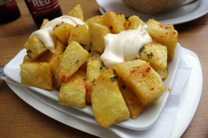 Patatas bravas are such a simple snack, yet so satisfying when done correctly. Here, each irregularly cut piece of potato was fried to perfection, until golden brown and crunchy with no unpleasantly mealy or soggy pieces in the center. They came dusted with paprika and topped with a hefty squeeze of garlicky aioli to drunk the pieces into. Absolutely perfect when you’re hungry, absolutely perfect with beer.