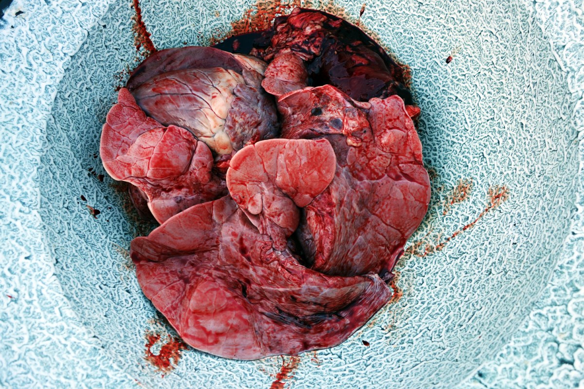 25 Published January 5, 2015 at 1500 × 1000 A bowl full of beautifully vibrant respiratory organs from a very healthy pig.