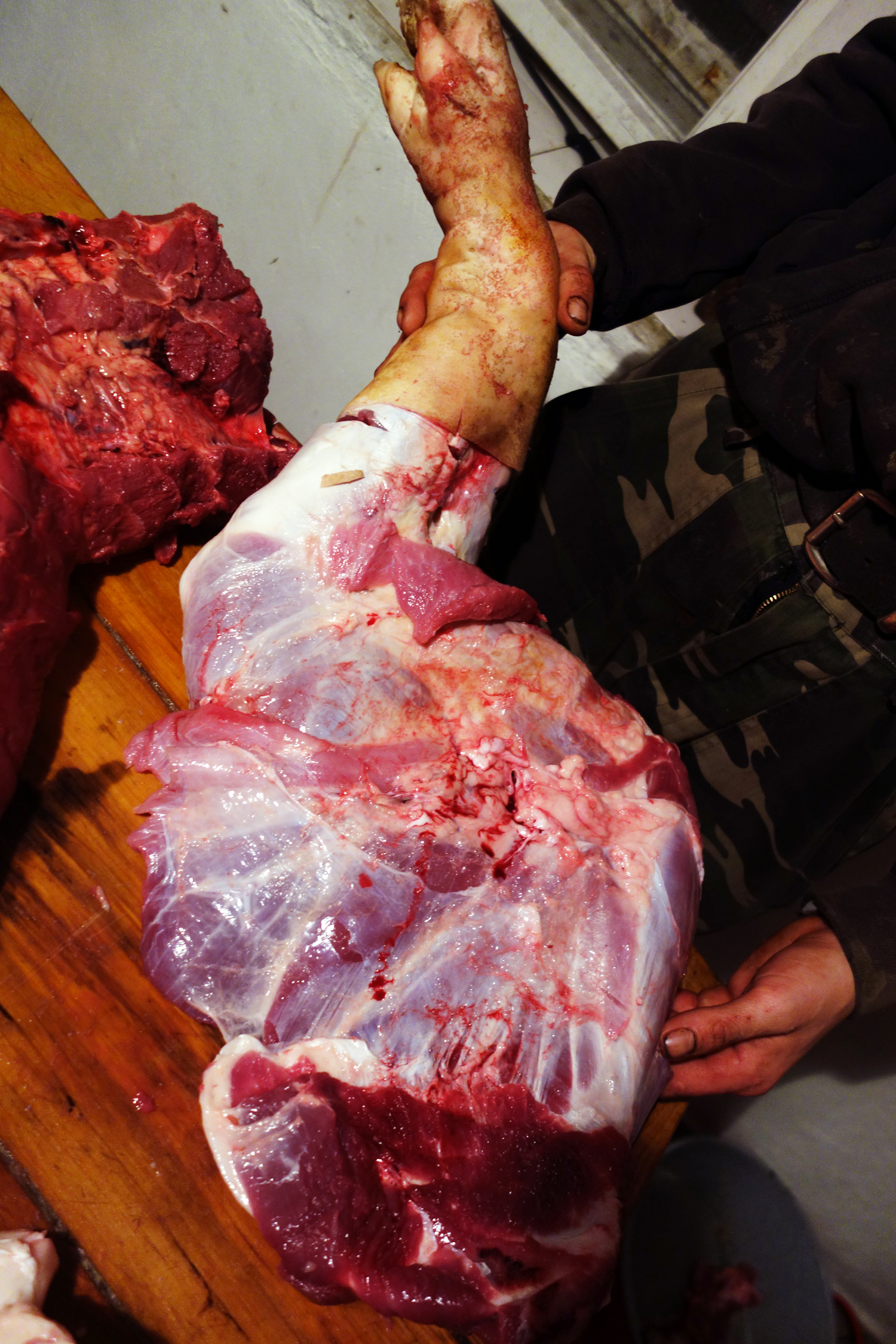 53 Published January 5, 2015 at 1500 × 2250 A leg is removed and stored separately. This will be sliced into hams to cure and cook.