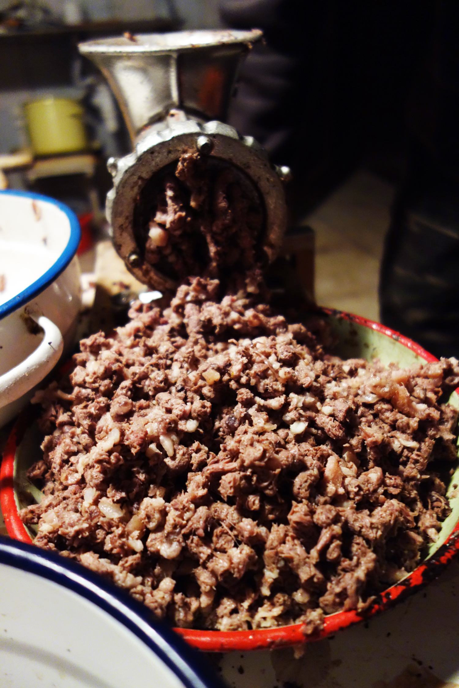 68 Published January 5, 2015 at 1500 × 2250 Dish upon dish is filled with ground innards, which is then dumped into a large bowl and set aside.
