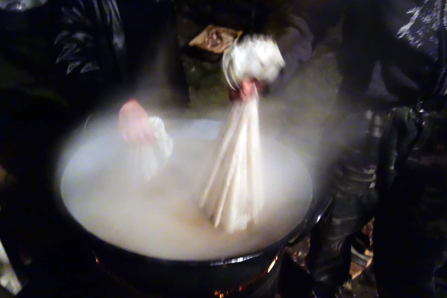 70 Published January 5, 2015 at 1500 × 1000 On the yard outside the cast iron cauldron is still full of the water in which the innards were boiled. Rice is placed into a canvas bag that is dipped into the water by the two boys. They stand on opposite sides.
