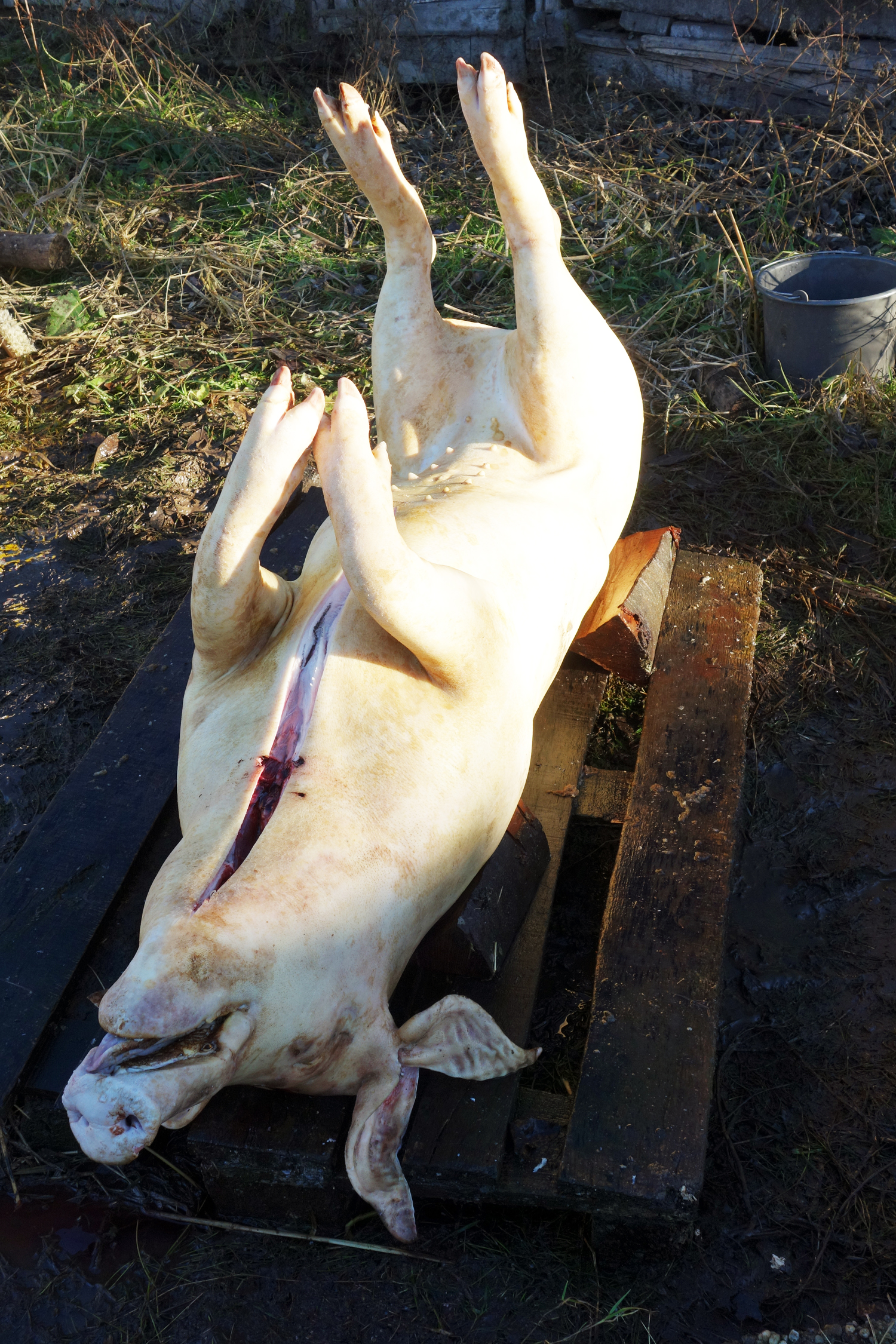 9 Published January 5, 2015 at 1500 × 2250 After the pig is torched, the white flesh tightens into a fixed shape. At this point the animal takes on the appearance of a marble statue.